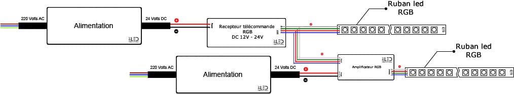 L'amplificateur nécessite une alimentation dont la puissance sera dimensionnée en fonction de la longueur de ruban que l'on souhaite prolonger.