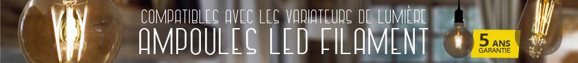 Découvrez nos ampoules à filament LED E27 pour votre éclairage intérieur ou extérieur afin de donner un côté chaleureux à votre environnement. Réalisez également des économies d’énergie. Nos ampoules LED sont dimmables, et donc compatibles avec les variateurs de lumières. 4 teintes sont disponibles : smoky, ambrée, blanc chaud, blanc froid. D'autres formes sont disponibles pour accentuer l'effet rétro / vintage de votre intérieur grâce au format du filament type Goutte, Spirale, Cylindre, Edison, Globe G80 et G125 XXL ...