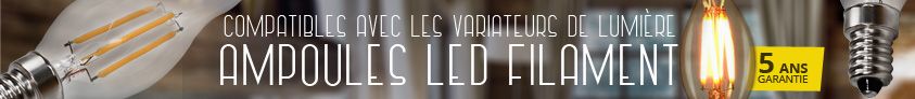 Ampoules LED à filament petit culot type E14. Adoptez les ampoules "flamme" et donnez un nouveau style à votre intérieur tout en réalisant de belles économies d'énergie. Nos ampoules sont compatibles avec les variateurs de lumières (dimmable). Deux teintes sont disponibles: blanc chaud ou ambrée.