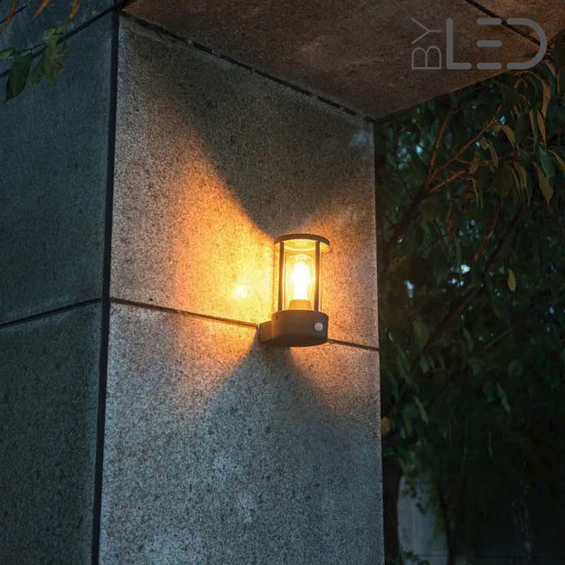 Applique d’extérieur détecteur de mouvement- Lanterne Murale Moderne - E27 LED