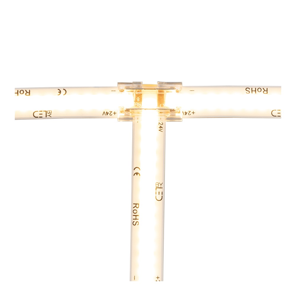 Ce connecteur LED appartient à la gamme innovante des connecteurs "ClipX", conçus pour raccorder vos ruban LED IP20 de manière rapide et presque invisible. Sa largeur totale de 7mm lui permet de rentrer aisement dans certains profilés pour rubans LED.