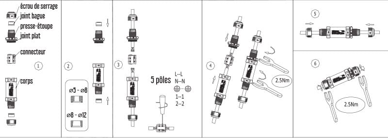 Ce connecteur est parfaitement adapté pour le prolongement de câbles ou la réparation des câbles endommagés.