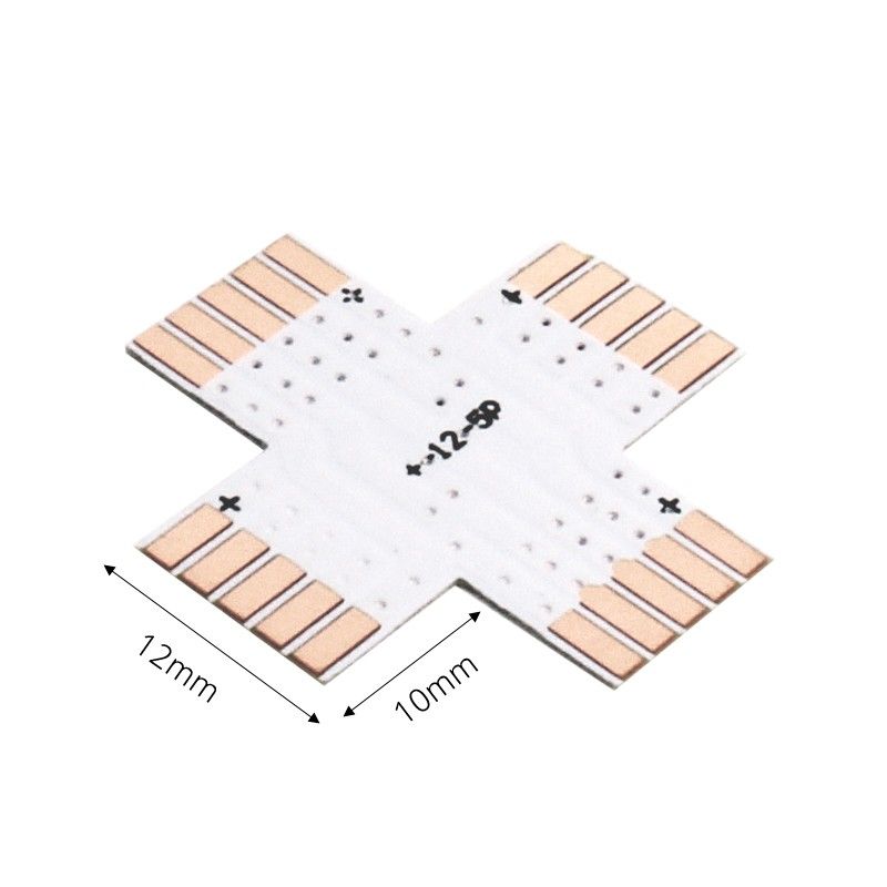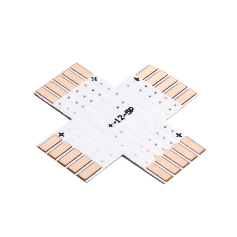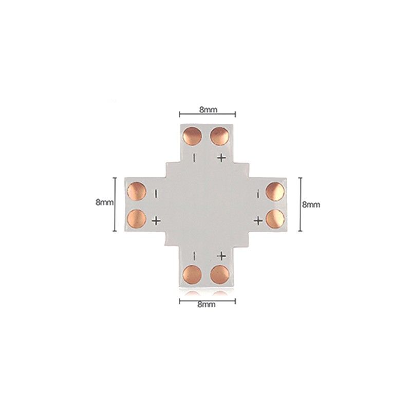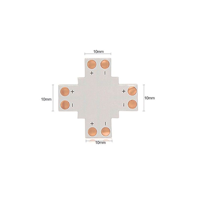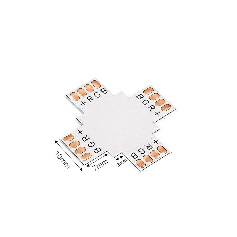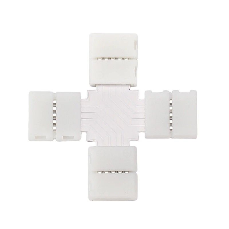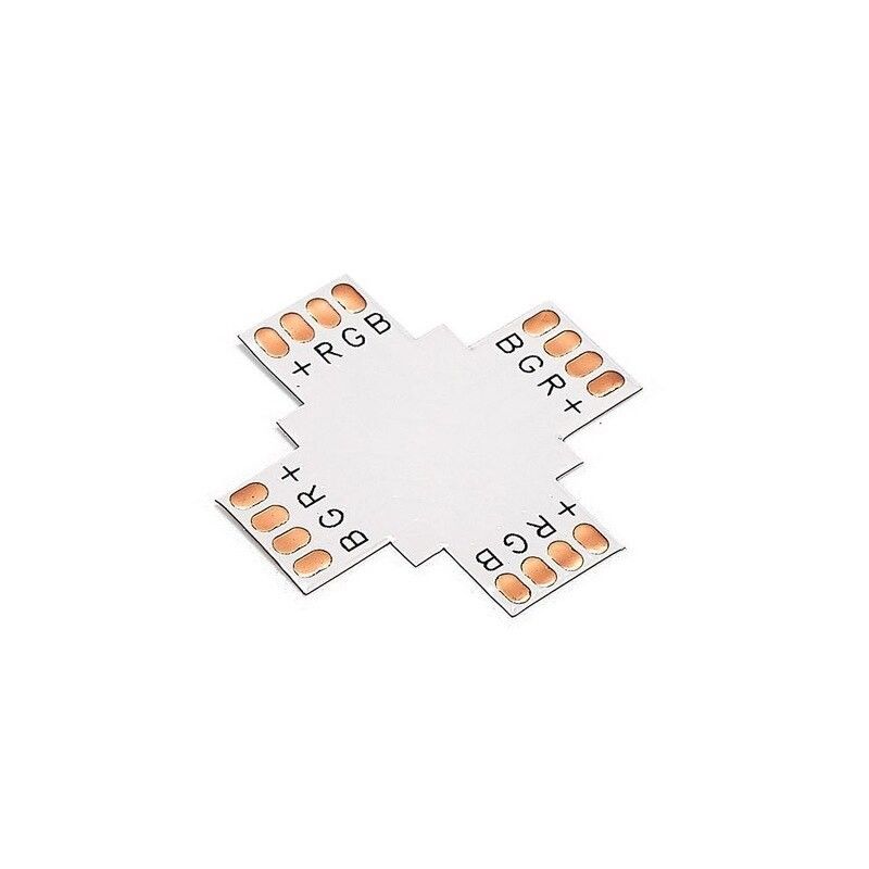 Ce connecteur à souder pour ruban LED permet de relier plusieurs rubans en X. Avec ce connecteur à 4 branches, vous pourrez relier aussi bien des rubans que des câbles (RGB, RGBW...) à ce connecteur.