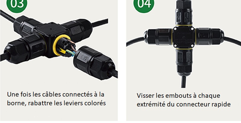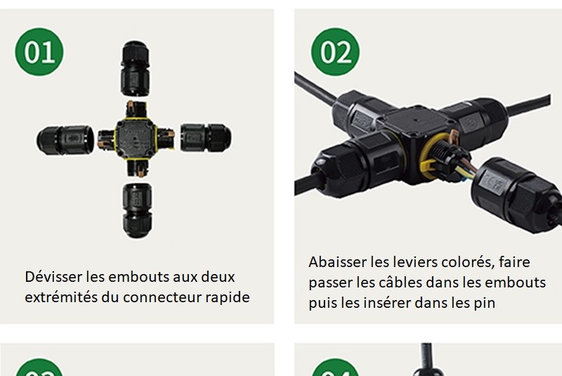 Le connecteur de jonction rapide 3 pôles, certifié IP68, garantit une étanchéité optimale, même en cas d'immersion prolongée dans l'eau. Cette certification le rend parfaitement adapté aux environnements extérieurs ou humides, où la sécurité et la durabilité des connexions électriques sont essentielles. Grâce à sa conception robuste et à son système de verrouillage fiable, il offre une protection totale contre l'humidité, les éclaboussures et même les intempéries les plus sévères.