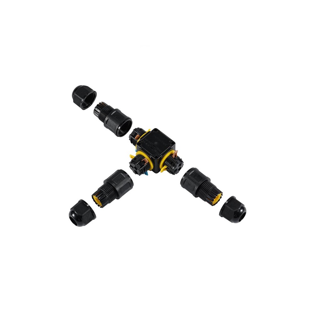 Ce connecteur de dérivation étanche (IP68) va vous permettre de réaliser très facilement une dérivation de câble électrique en extérieur, en milieu humide ou immergé.