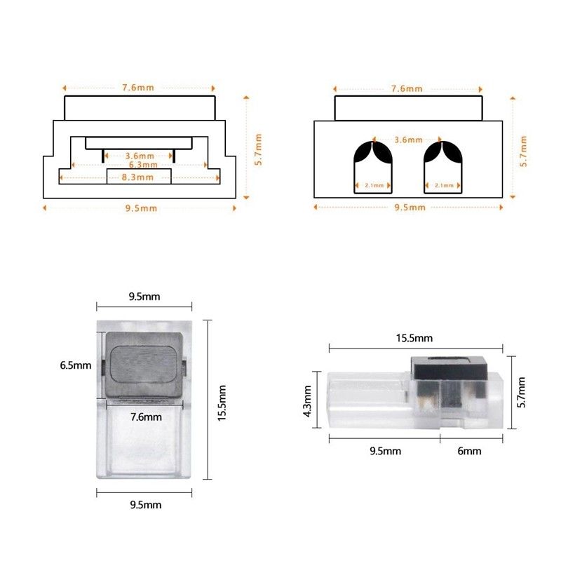 Slim par rapport aux connecteur standard, mais je n'ai pas pu les installer dans la reglette alu (reglette alu très étroite achetée dans une GSB). Connection facile.