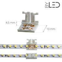 Ce connecteur ultra plat permet de réaliser une connexion entre deux rubans LED mono 10mm IP20. Très simple d'utilisation, il ne nécessite pas l'usage d'un fer à souder. Ses avantages : Très faible largeur, permettant une insertion simplifiée dans un profilé en aluminium ; Son matériau transparent permet de l'utiliser sur des rubans jusqu'à 120...