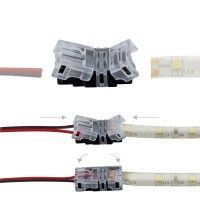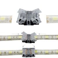 Ce connecteur ultra plat permet de réaliser une connexion par câbles vers un ruban LED 8mm IP20. Très simple d'utilisation, il ne nécessite pas l'usage d'un fer à souder. Ses avantages : Très faible largeur, permettant une insertion simplifiée dans un profilé en aluminium ; Son matériau transparent permet de l'utiliser sur des rubans jusqu'à 120...