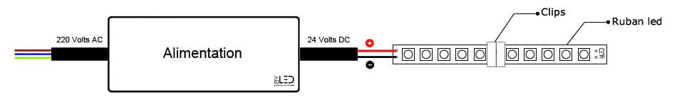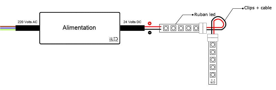 Branchement de plusieurs sections de rubans LED en cascade (sur la même ligne):