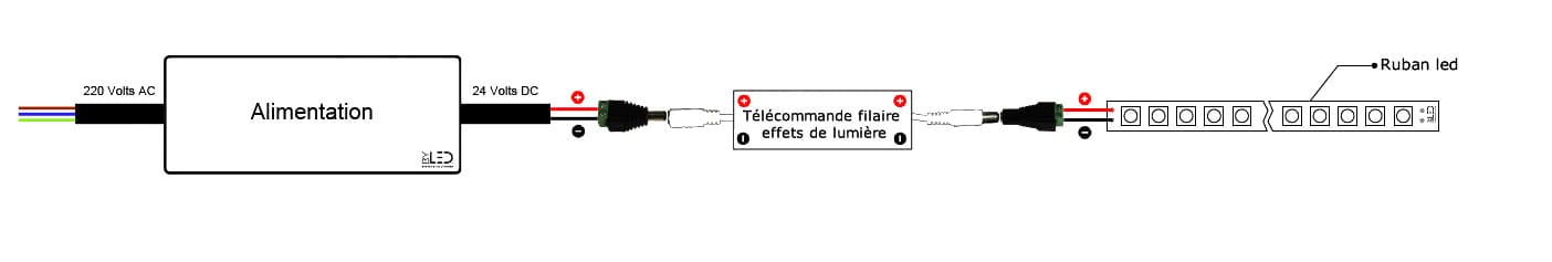 Branchement d'un ruban LED monocolore avec variation d'intensité lumineuse par télécommande filaire: