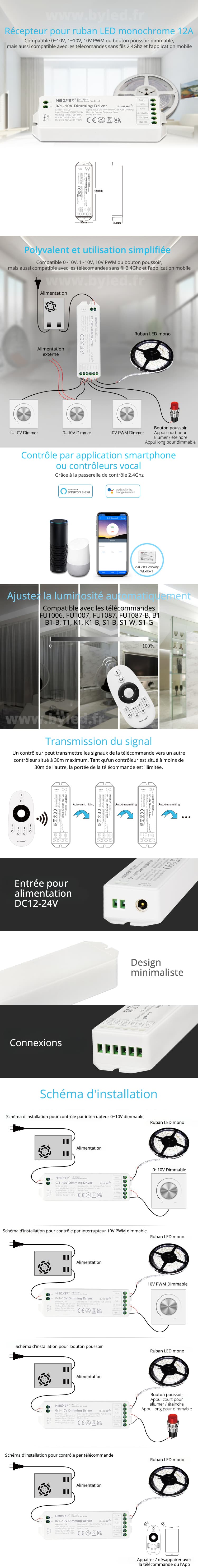 Ce contrôleur est compatible avec les télécommandes MiBoxer & Milight mono (FUT007, FUT087, FUT087-B, B1, B1-B, K1, K1-B, S1, S1-B).