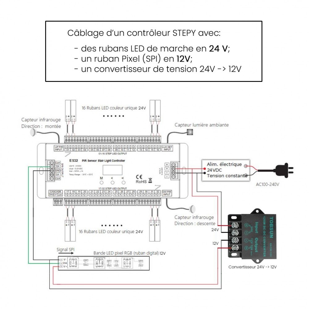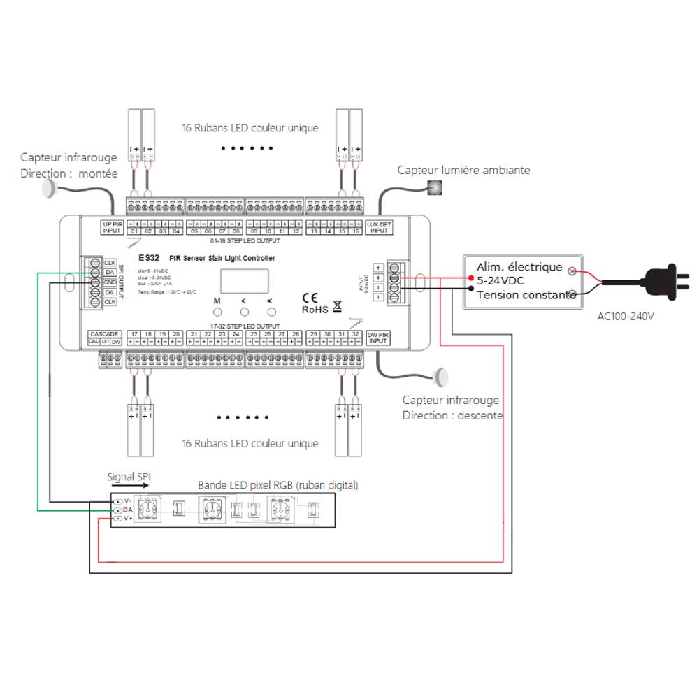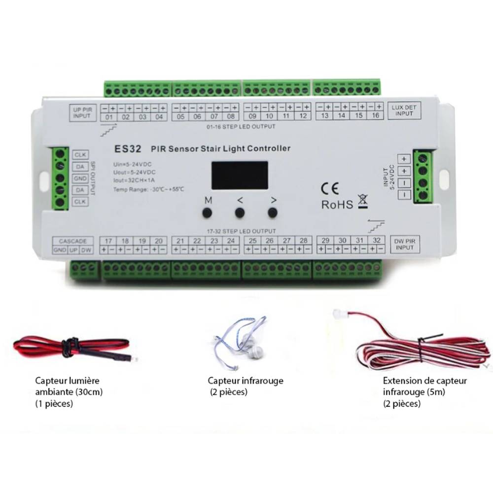 Contrôleur 32 marches et rampe d’escalier pour ruban LED mono et digital – ES32