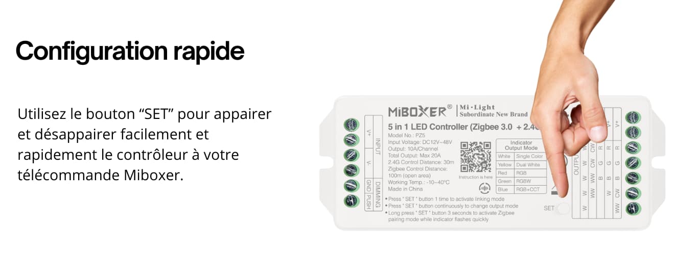 Pour appairer la télécommande (2.4GHz) au contrôleur Miboxer, il faut :