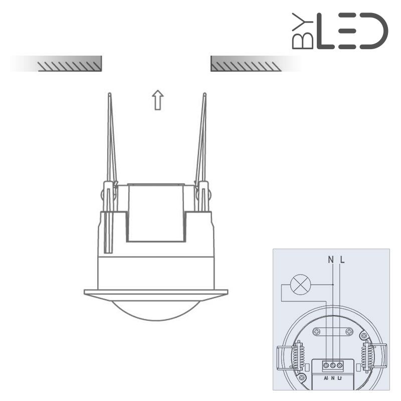 Il est conçu pour être encastré dans un plafond (diamètre de perçage du trou: 67 mm) et se fixera avec ses clips de maintien comme un spot encastrable.