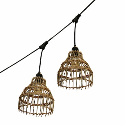 Guirlande guinguette 20 mètres (IP65) + 20 ampoules LED à filament+ 20 abat-jours "Bambu" - culot E27 - 230V. Kit complet avec 20 ampoules LED, 20 abat-jours au style tropical et une guirlande guinguette. Il décorera votre extérieur / intérieur, salon d'été ou terrasse de restaurant ! Grâce au système de rallonge atteignez jusqu'à 200m de guirlandes ;...
