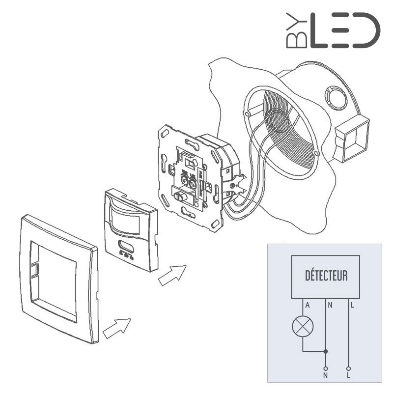 Il est conçu pour être installé dans une boite d'encastrement standard (fixation par vis ou par griffes fournies) à la place d'un interrupteur traditionnel.