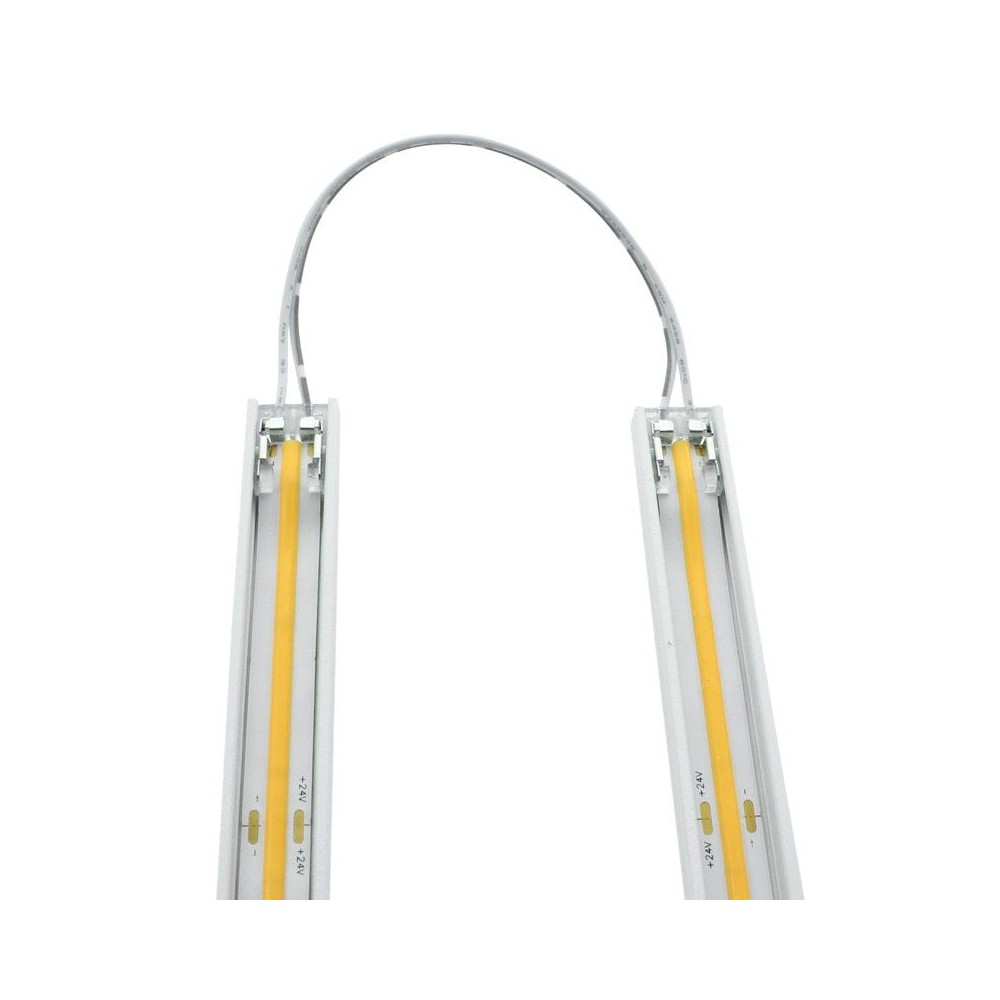 Cette jonction cablée "ClipX" IP20 est compatible avec les rubans LED monocouleur traditionnels ainsi qu'avec les rubans LED monocouleur COB.