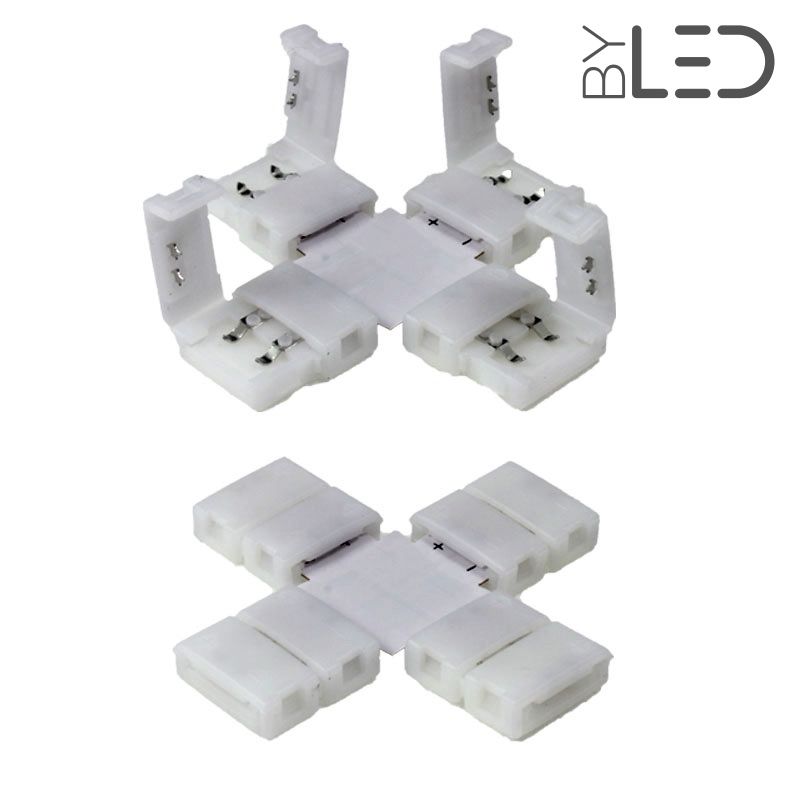 Jonction en X pour ruban LED mono IP20 8mm sans soudure "Click"