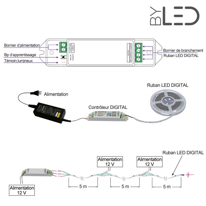 Afin de faciliter la conception de vos projets en ruban LED, byled a créé une page complètement dédiée aux différents types de branchements possibles. D'autres configurations sont possibles, n'hésitez pas à nous soumettre vos besoins par email.