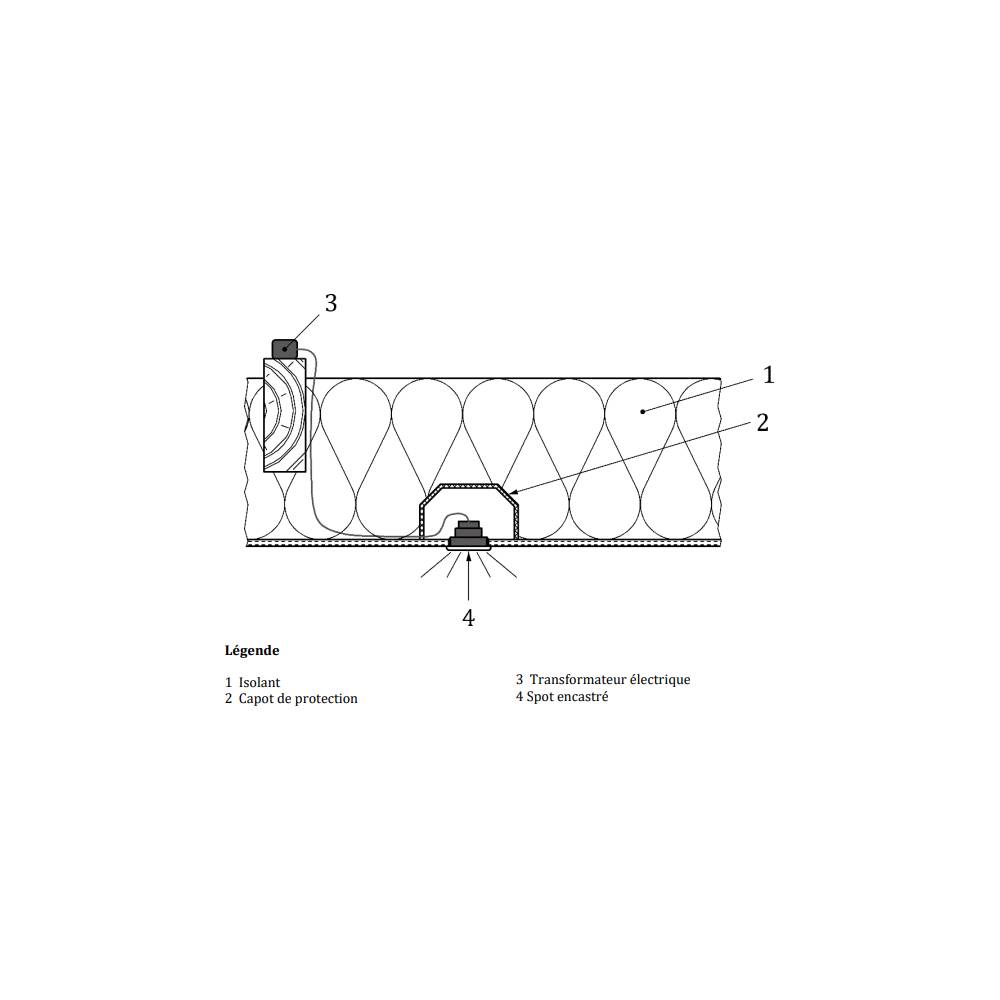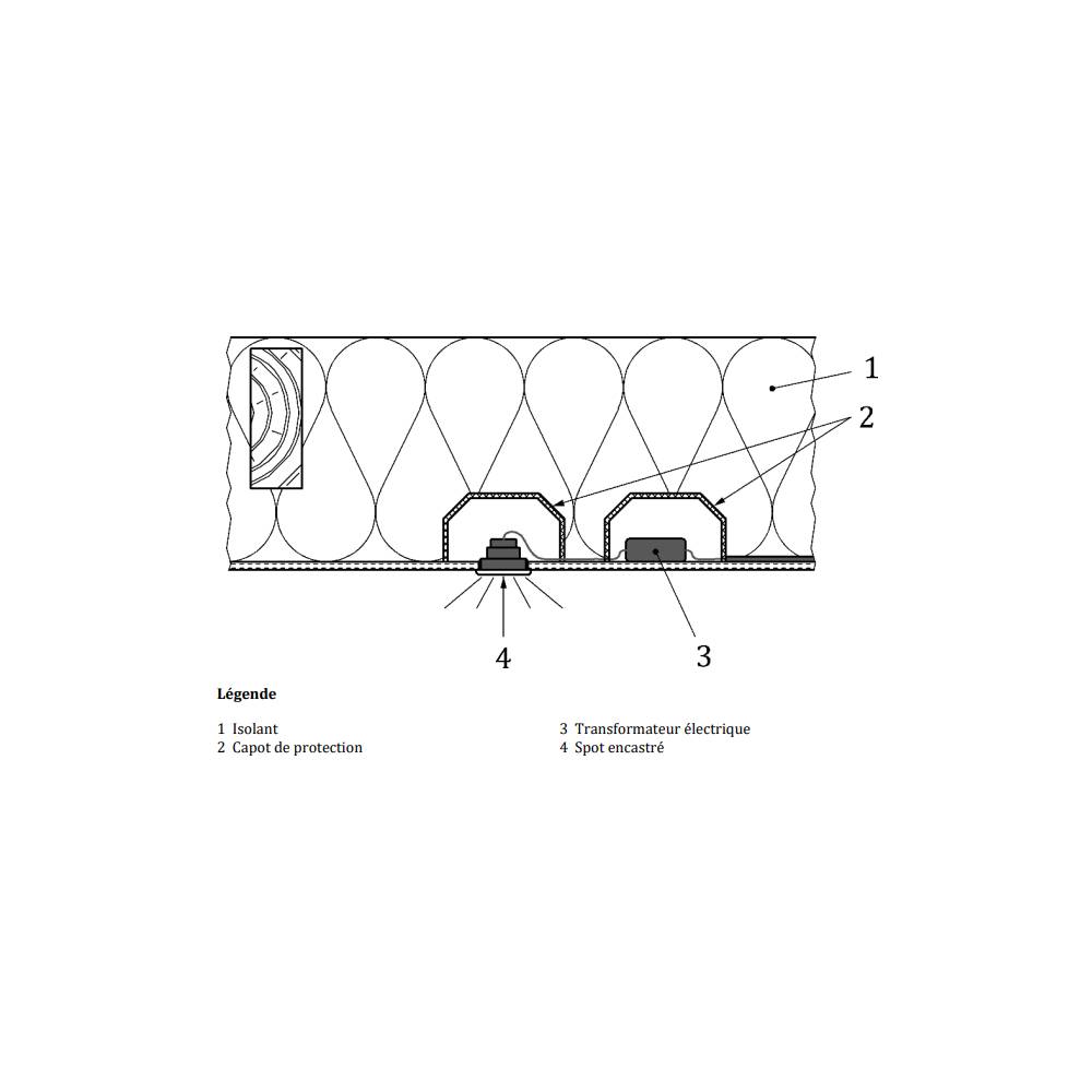 Le Ramspot RT répond pleinement aux exigences du DTU 45.11, le Document Technique Unifié essentiel pour les travaux d'isolation thermique des combles et des toitures par isolation projetée en vrac. Il garantit que l'installation électrique reste conforme aux normes de sécurité les plus strictes, notamment en évitant tout contact entre l'isolant et les spots encastrés. Cela contribue à réduire les risques de surchauffe électrique, de condensation et d'incendie, assurant ainsi la sécurité à long terme de votre éclairage encastré et de votre foyer. Pensez à protéger vos spots LED et leurs transformateurs séparés de manière indépendante, grâce à un second capot Ramspot RT, ou bien en sortant votre driver de la couche isolante.