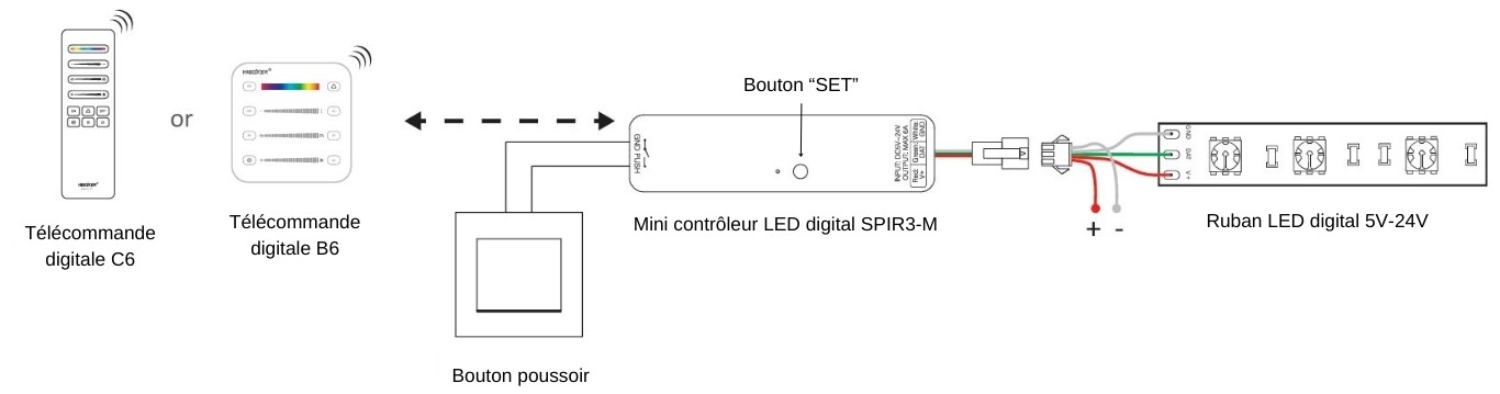 Contrôleur sans fil MiBoxer SPIR3-M pour ruban LED digital.