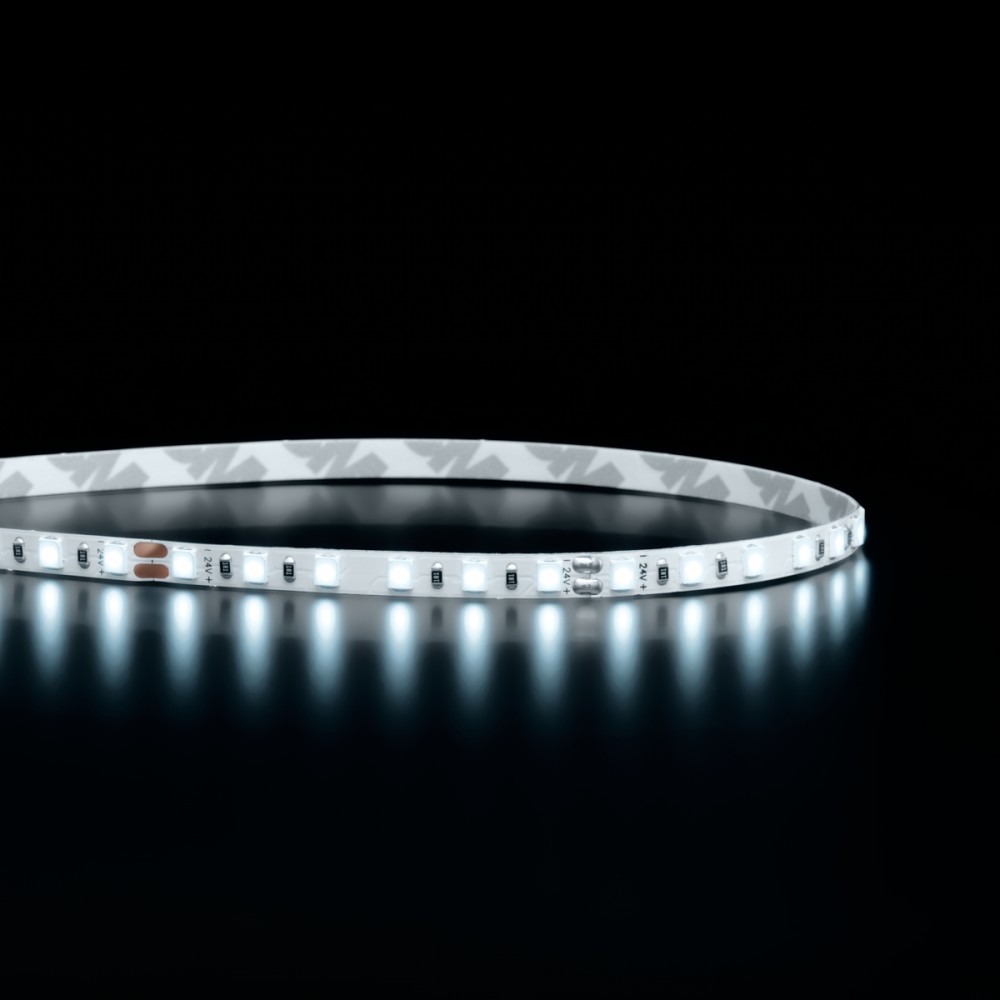 Chaque ruban LED est équipé d'un puissant adhésif (3M©) afin de la faire adhérer parfaitement sur une surface plate de type profilé LED.