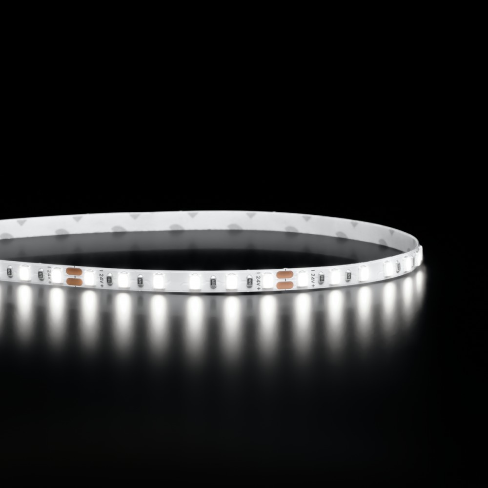 Avec 120 LED/mètre, le bandeau LED de 9,6W/m s'intègre parfaitement dans un placard, un dressing ou pour l'éclairage d'un plan de travail. Vous bénéficiez ainsi d'un éclairage adapté avec un rendu esthétique et très moderne. Pour lisser encore plus la diffusion de la lumière et obtenir un effet néon, nous vous conseillons d'intégrer votre ruban dans un profilé pour ruban LED au diffuseur givré.