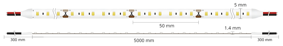 Aussi, chaque ruban est pré-câblé des deux côtés avec un câble de 30cm.