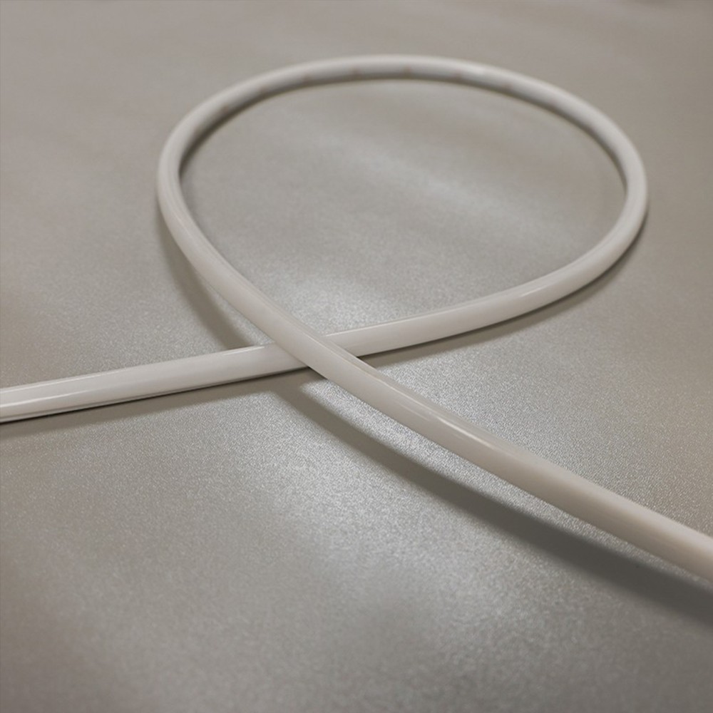 Ce néon flex LED offre un éclairage fonctionnel avec une diffusion homogène de la lumière, sans effet de points lumineux grâce à son diffuseur givré. La source lumineuse est directement intégrée dans le néon, elle se compose d'un ruban LED de 10W/m avec 180 LED/m. Cette innovation vous permet une installation plus simple et un gain de temps considérable pour vos projets, notamment lorsque qu'une protection contre les chocs et/ou l'humidité est recherchée.