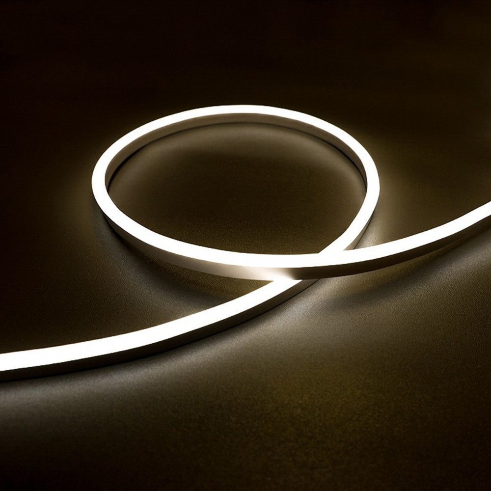 Grâce à ses 180 LED/m et son diffuseur givré, ce néon flexible LED est conçu pour émettre une lumière homogène sur toute sa surface, sans distinguer de points lumineux. Son avantage ? Un ruban LED de 10W/m déjà intégré au néon, simplifiant considérablement l'installation du produit.