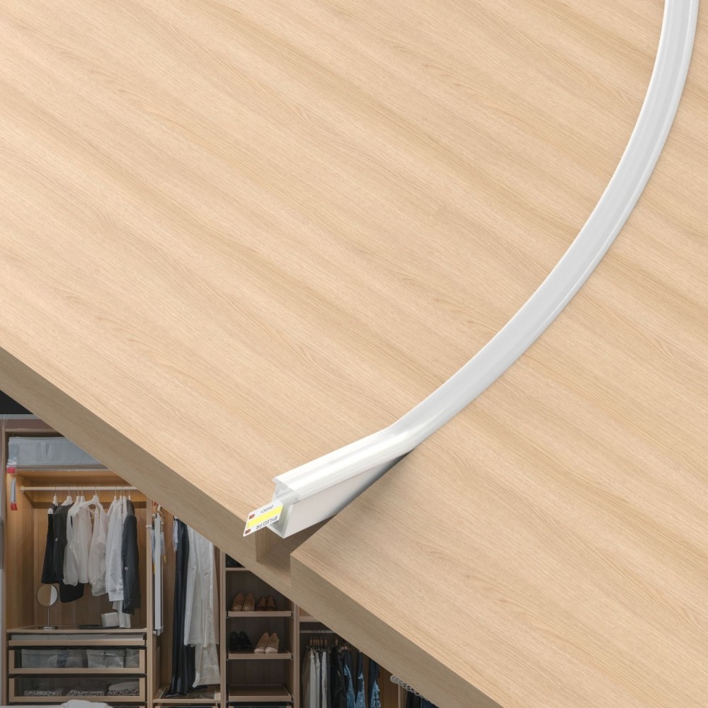 Ce néon flex LED extra-fin (4mm) est très discret et s'encastrera aussi bien dans du béton, de l'aluminium ou du bois. Il est composé d'un diffuseur en forme de "T" qui permet de cacher les imperfections lorsque vous l'encastrerez dans des rainures de 4mm de large et de 10 mm de profondeur.