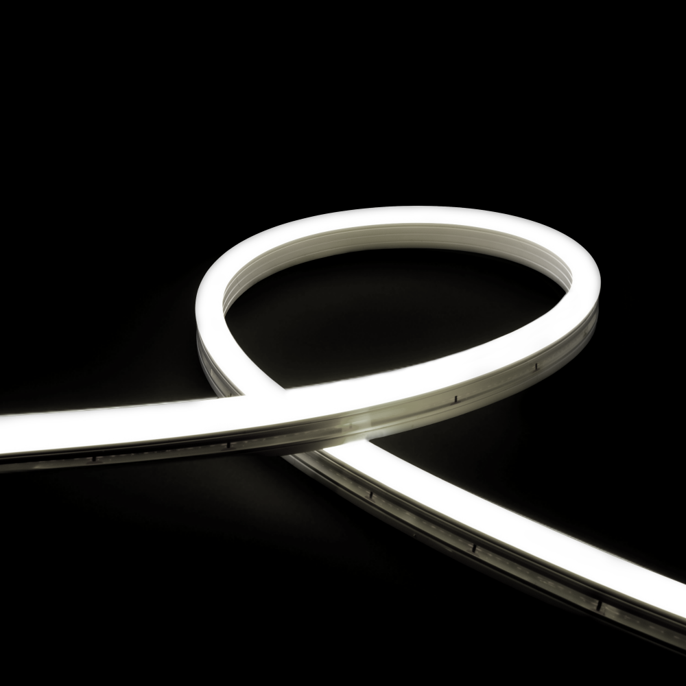 Avec le ruban néon flex LR1225, plus besoin d’insérer un ruban LED, celui-ci est directement intégré dans la gaine flexible, ce qui facilite l’installation et garantit une finition propre et professionnelle. Ce ruban LED intégré est dimmable, c’est-à-dire que son intensité lumineuse peut être varié en fonction de vos besoins. Que vous souhaitiez une lumière faible pour créer une ambiance apaisante ou un éclairage plus puissant pour un usage fonctionnel, vous pouvez adapter la luminosité à tout moment à l’aide d’un variateur, d'un contrôleur ou d'un transformateur.