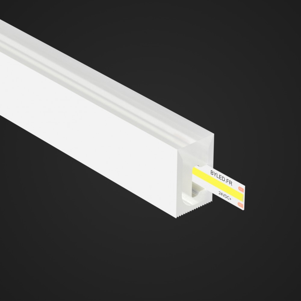 Avec le ruban néon flex L1220, plus besoin d’insérer un ruban LED, celui-ci est directement intégré dans la gaine flexible, ce qui facilite l’installation et garantit une finition propre et professionnelle. Ce ruban LED intégré est dimmable, c’est-à-dire que son intensité lumineuse peut être varié en fonction de vos besoins. Que vous souhaitiez une lumière faible pour créer une ambiance apaisante ou un éclairage plus puissant pour un usage fonctionnel, vous pouvez adapter la luminosité à tout moment à l’aide d’un variateur, d'un contrôleur ou d'un transformateur.