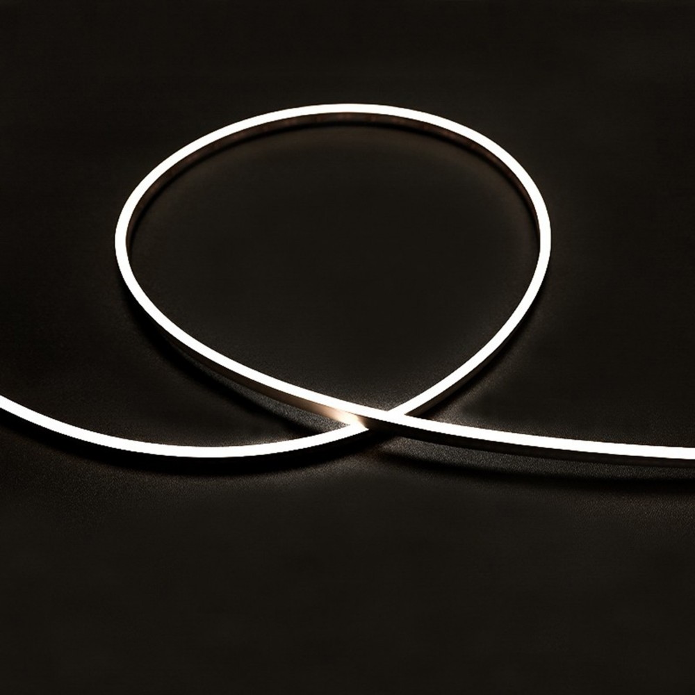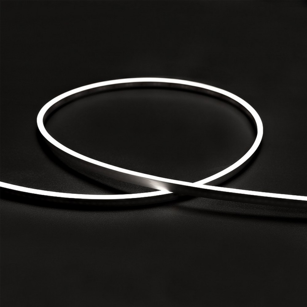 Ce néon flexible LED extra-fin (seulement 3,3mm de large) est conçu pour s'intégrer parfaitement dans vos réalisations où un fini délicat est attendu. L'innovation de ce néon est qu'il intègre directement un ruban LED de 6W/m à l'intérieur, pour simplifier l'installation par rapport à un néon flex vide.