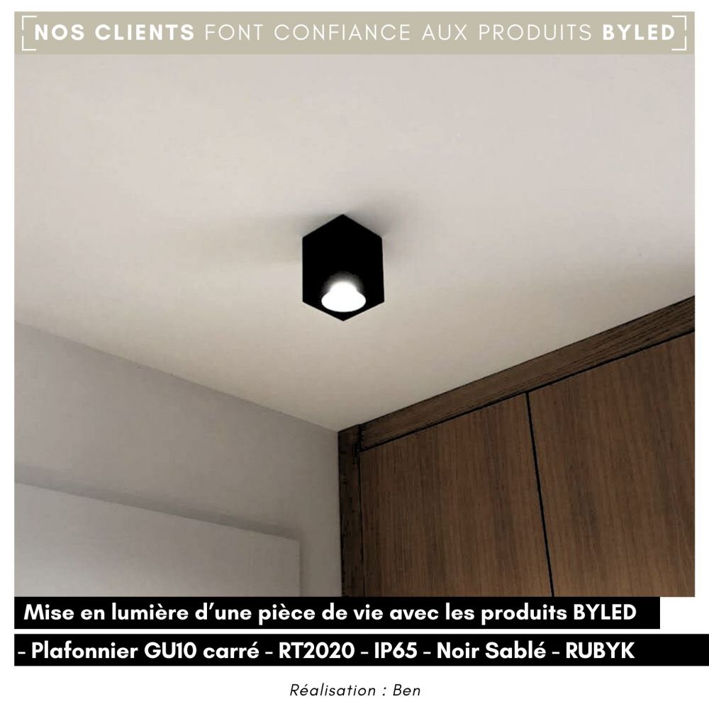 Notre gamme "RUBYK" répond à la Réglementation Thermique RT2020 (concernant l'isolation et les échanges thermiques). Ces appliques sont donc 100% étanches à l'air, bloquant ainsi le flux d'air entre le faux plafond et la pièce.