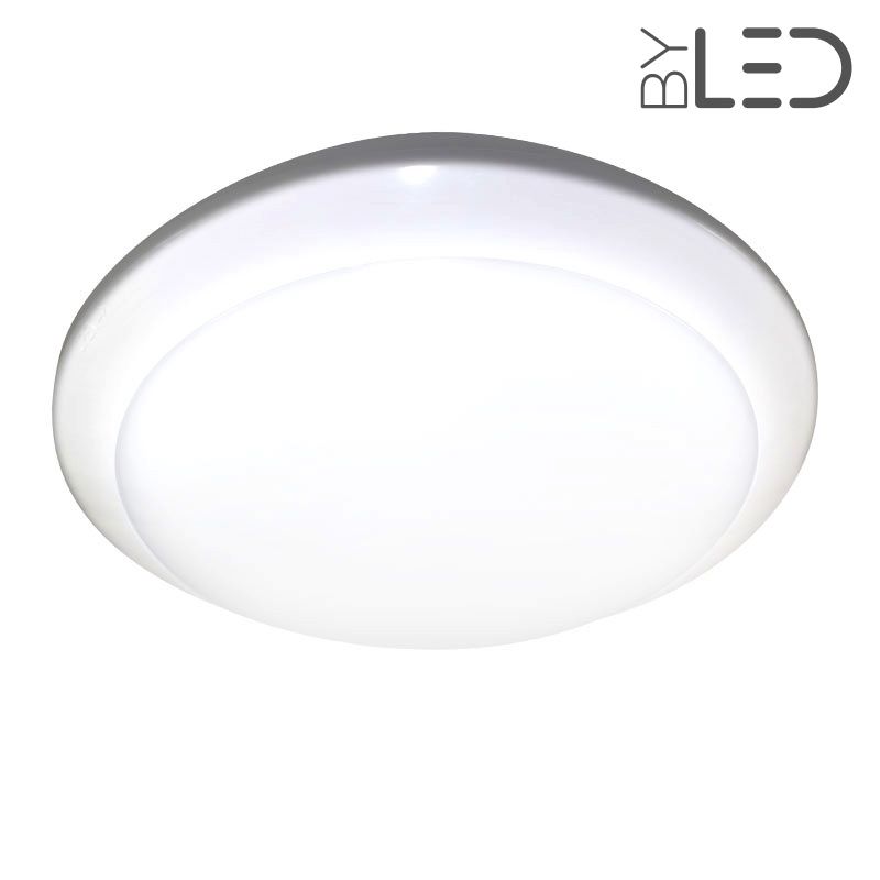 Le plafonnier à LED Galbe est étanche (IP65). Ainsi, il peut être installé à l'extérieur ou dans les pièces humides. Il est également protégé contre les chocs importants (IK10).