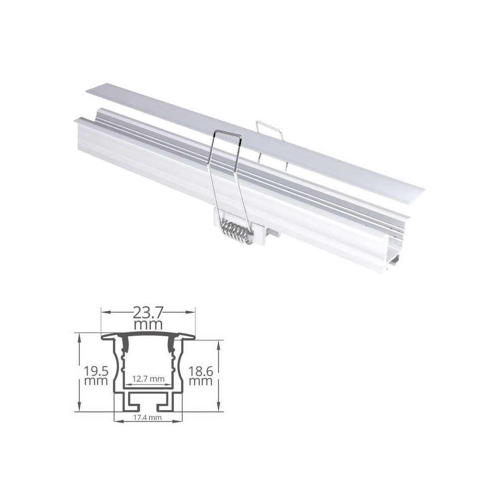 Ce profilé blanc est spécialement conçu pour s'encastrer dans des matériaux creux (type BA13, bois, etc.) dans les murs, plafonds, meubles, dressing, créant ainsi un chemin lumineux très moderne.