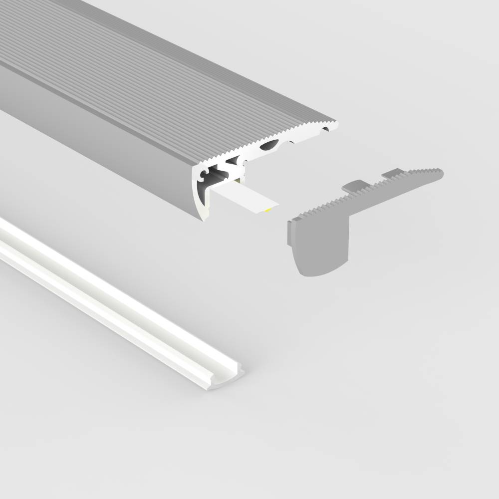 Ce profilé en aluminium avec finition anodisée pour ruban LED est spécialement conçu pour éclairer les contre-marches d’escalier, en se fixant au nez de marche par vissage et/ou collage. Les vis sont dissimulés par un couvercle de finition. Également, des embouts sont inclus pour être fixés de chaque côté du profilé afin de parfaire le résultat.
