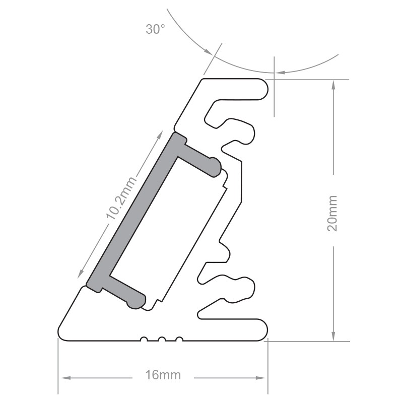 Ce modèle à la spécificité d'être asymétrique avec un largeur de 16mm d'un côté et 20mm de l'autre. Cet écart suffit à créer, selon vos besoins, un angle de 30 ou de 60°.