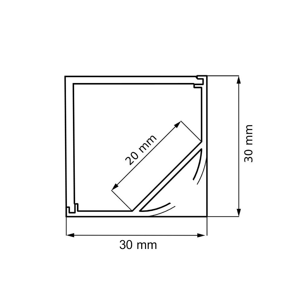 Ce profilé A44 en forme d'angle droit s'adaptera parfaitement dans un angle à 90°. Les clips de fixation ultra fins en inox permettent une fixation discrète et rapide.