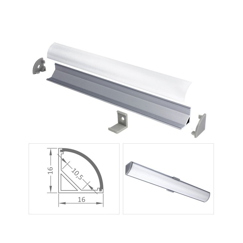 Ce profilé en aluminium LED d'angle est adapté pour l'installation de nos rubans LED qui se collent dans le fond du profilé. La largeur du ruban ne devra pas dépasser 10 mm.
