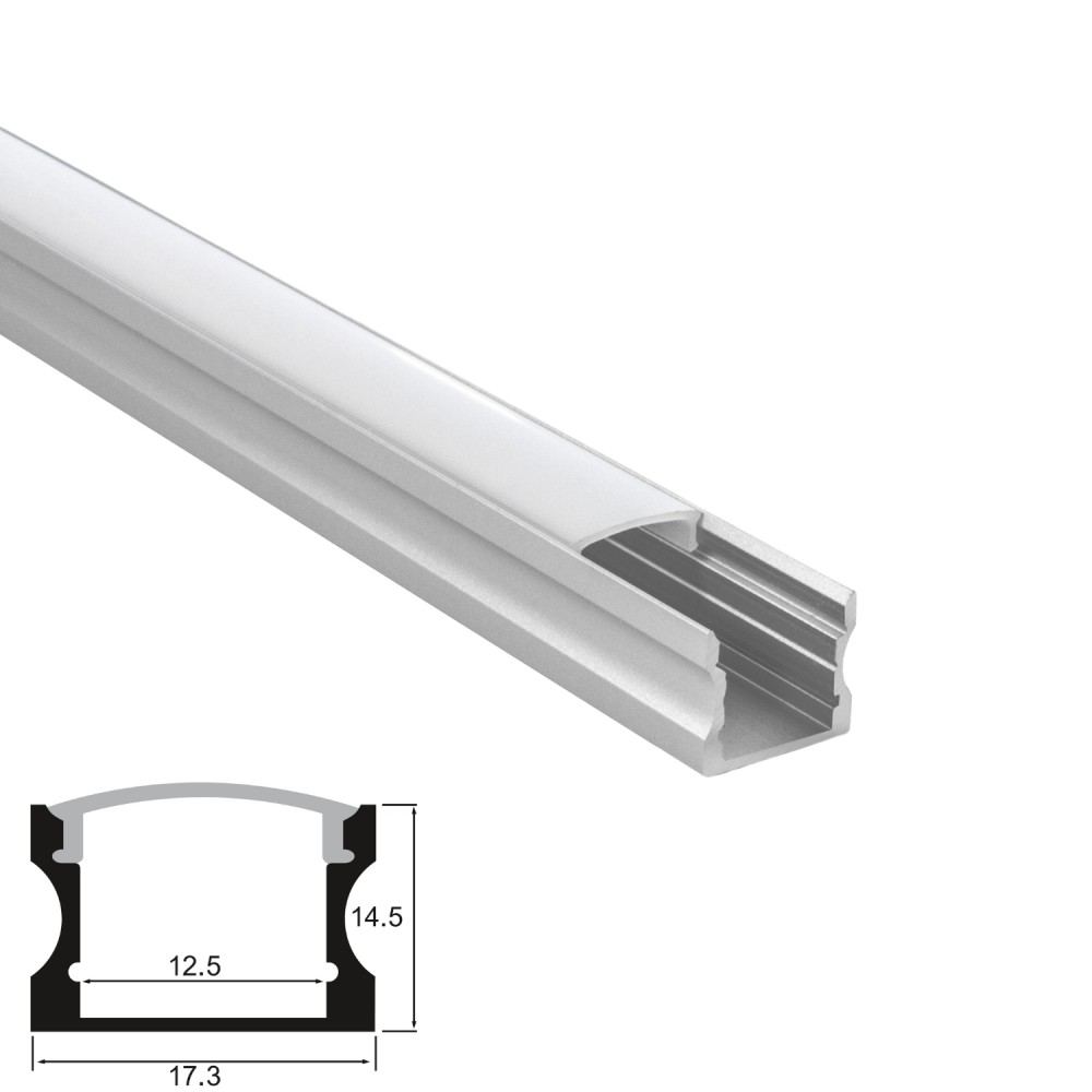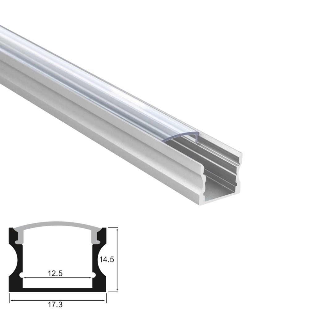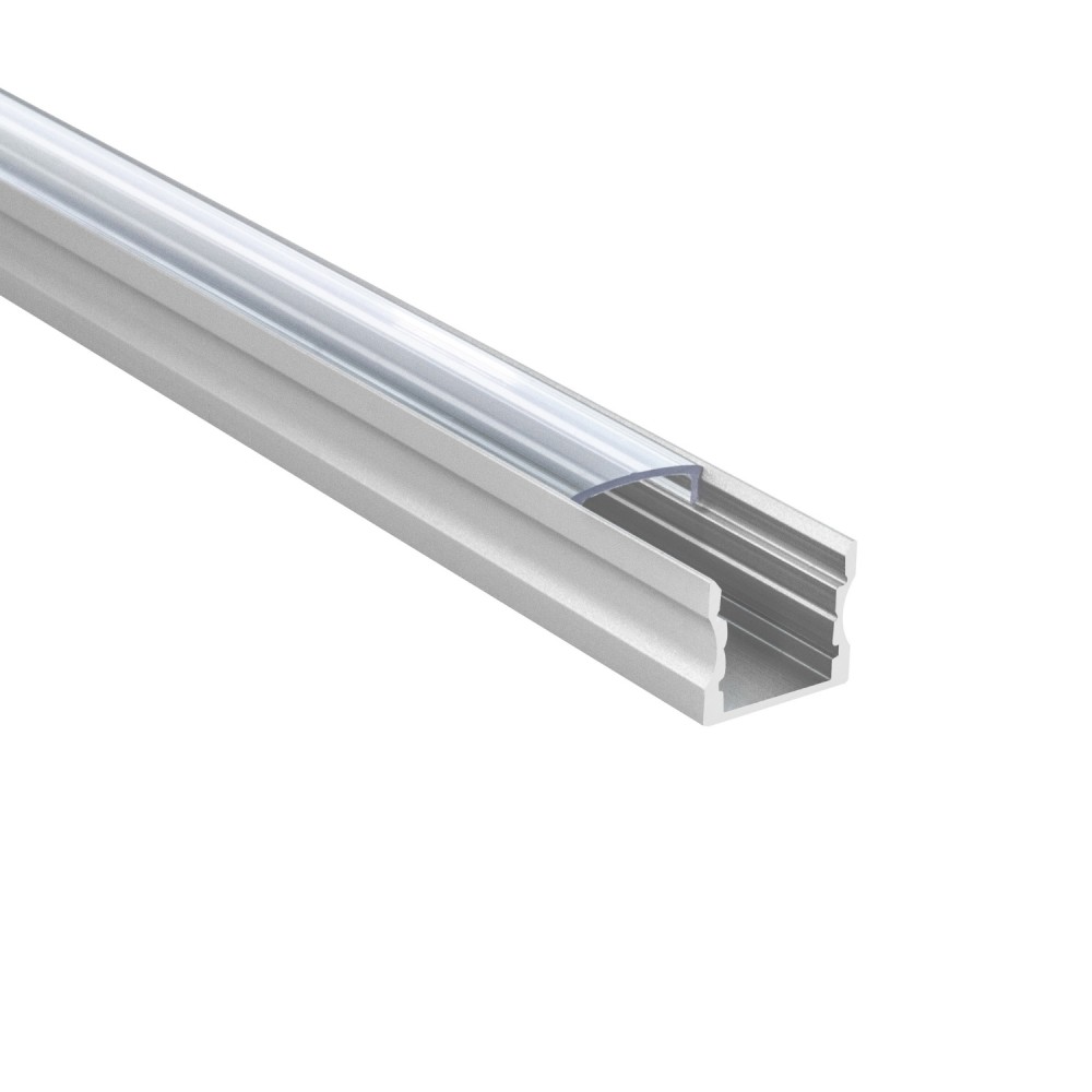 Profilé de ruban LED C33. Profilé aluminium en applique avec finition de protection anodisée. Ce profilé est également disponible en noir et en blanc.