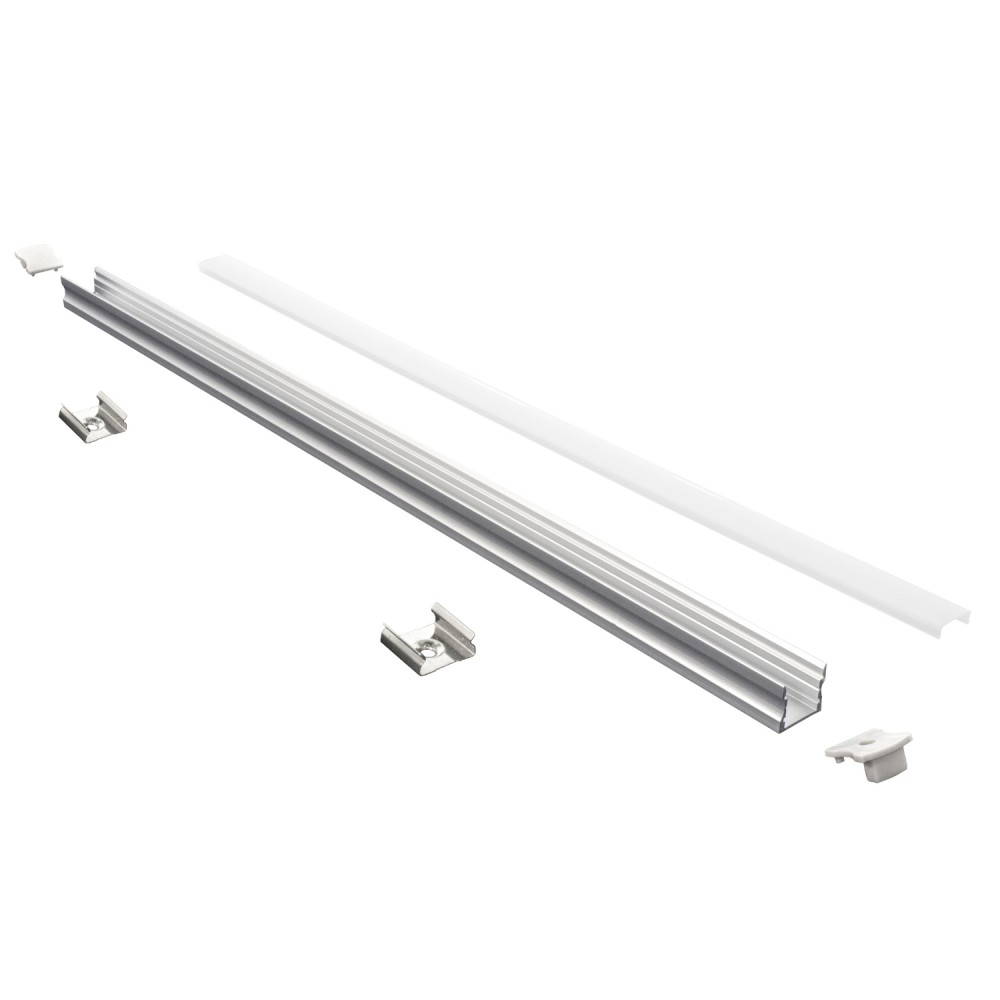 Le profilé est livré avec un diffuseur, un jeu de clips de fixation et un jeu d'embouts de finition.