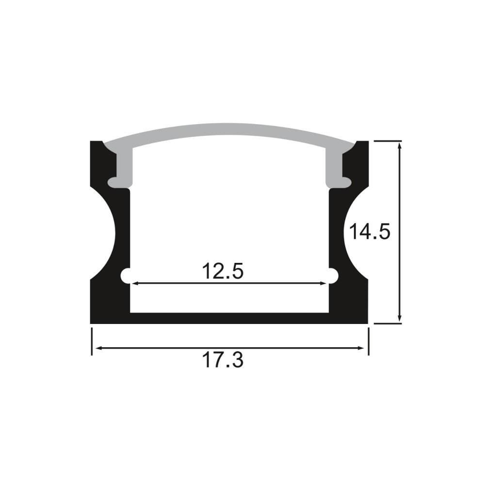 17mm x 14,5 mm – Largeur maximum de ruban LED autorisée : 12mm.