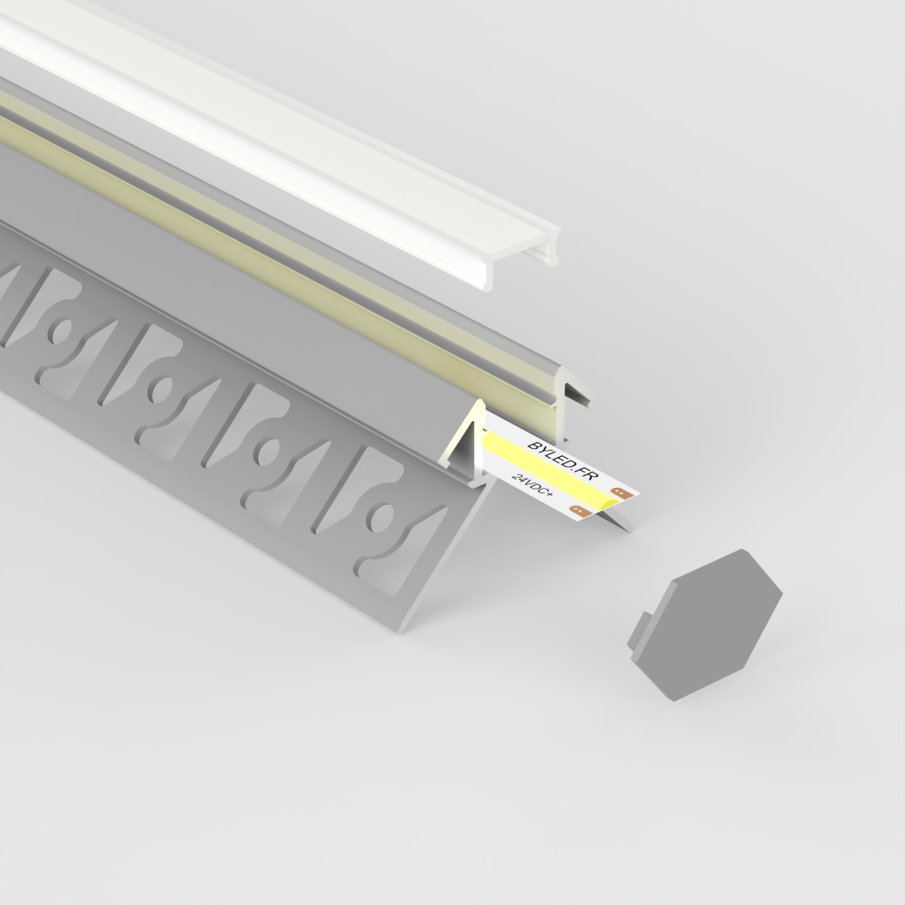 Découvrez ce profilé d'angle sortant en aluminium conçu spécialement pour une installation encastrée, dissimulant avec élégance un ruban LED (à coller dans le fond du profilé). La largeur du ruban doit se limiter à 12,5 mm (ruban LED monocouleur, blanc ou RGB).
