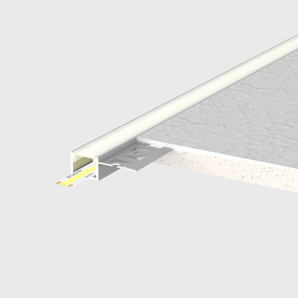 Ce profilé esthétique et moderne, inclut un diffuseur givré permettant une répartition homogène de la lumière sur la longueur du profilé.