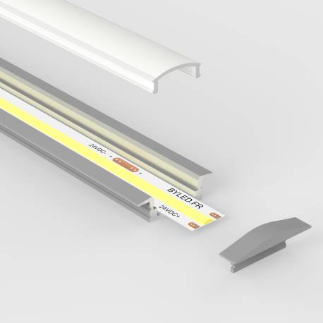 Vous apprécierez le diffuseur givré qui offre une répartition homogène de la lumière ! Le ruban LED est à coller au fond du profilé, dans l’espace prévu à cet effet.