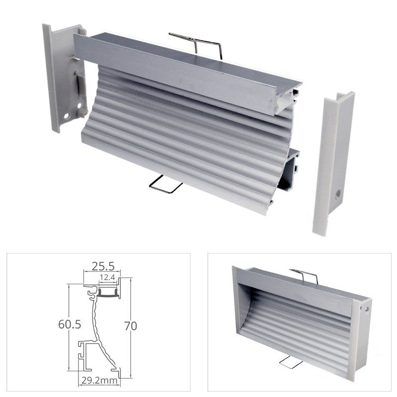 Ce profilé encastrable est à installer dans un mur creux et se fixe tout comme un spot encastrable avec les ressorts de fixation qui viennent s’appuyer derrière le mur.