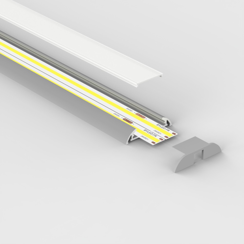 Conçu en aluminium anodisé, ce profilé LED assure une excellente dissipation de la chaleur, garantissant une durée de vie prolongée pour vos rubans LED. Son diffuseur givré adoucit la lumière en réduisant l’effet de points lumineux des rubans LED.