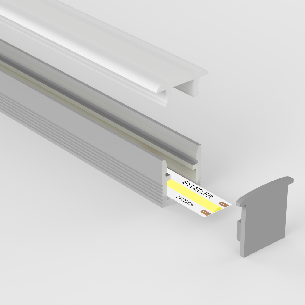 Ce profilé est disponible en longueur de 1m, 2m et 3m (incluant 2 embouts de finition par mètre et un diffuseur givré de la bonne longueur).